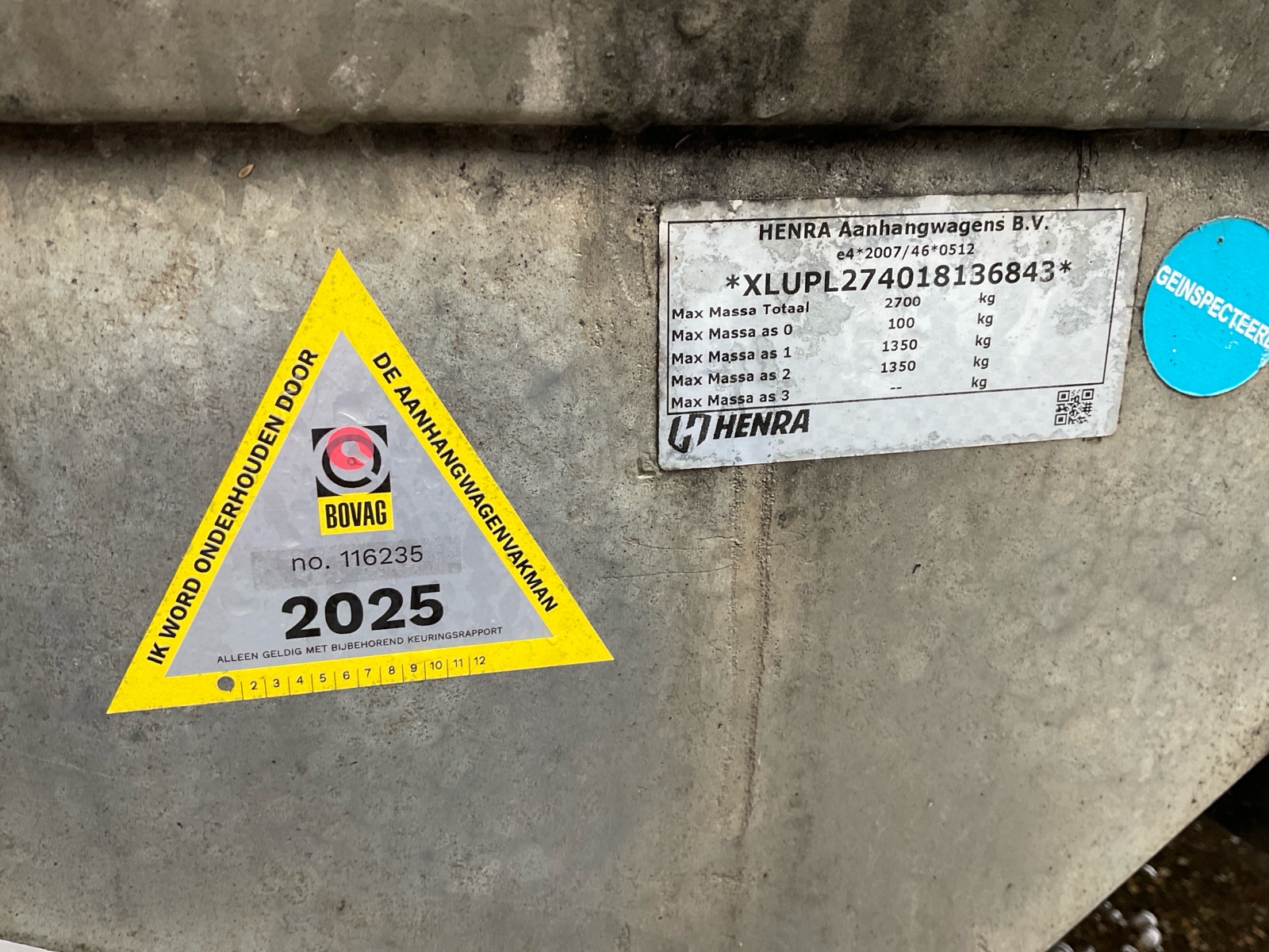 | Totaal gewicht (kg) | 2,700 kg |